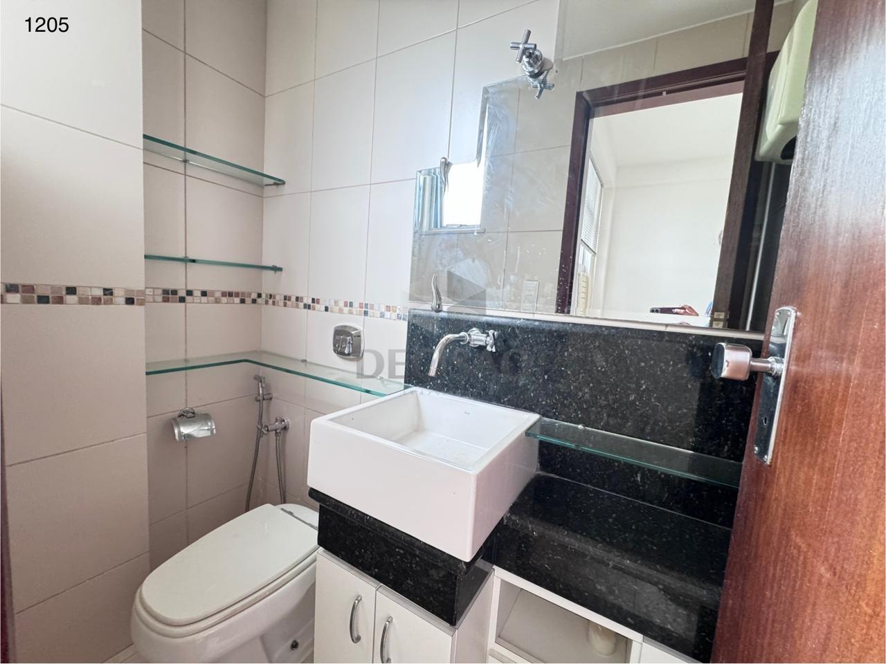 Sala: Separada em sala e ante-sala com 02 janelas (uma para cada ambiente), sala clara e bem ventilada em andar alto com vista (piso em cerâmica e armários), banheiro reformado com bancada em granito.